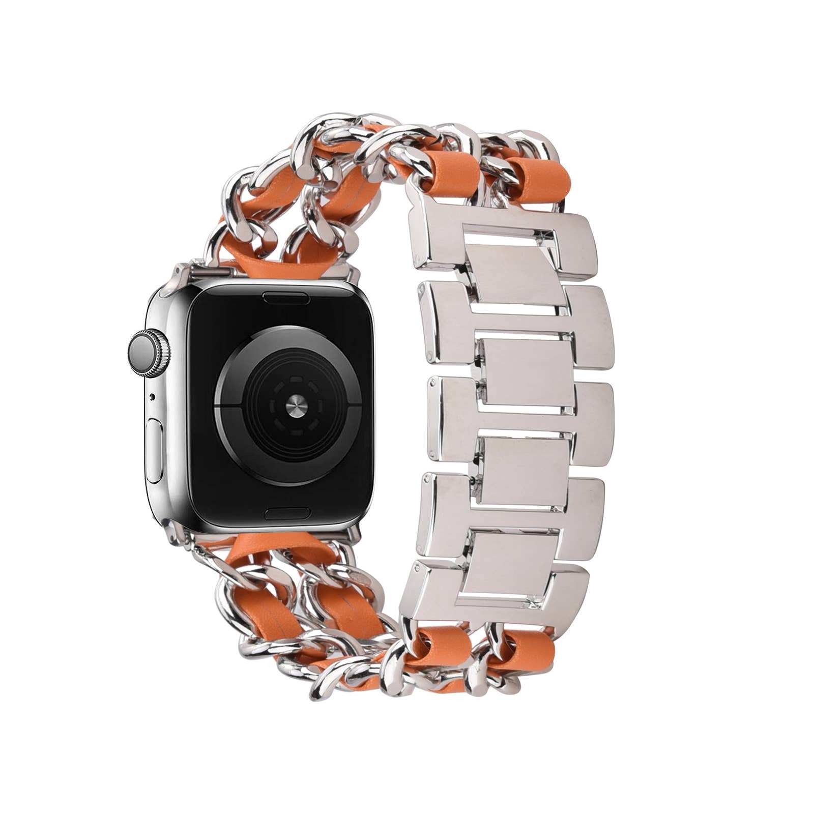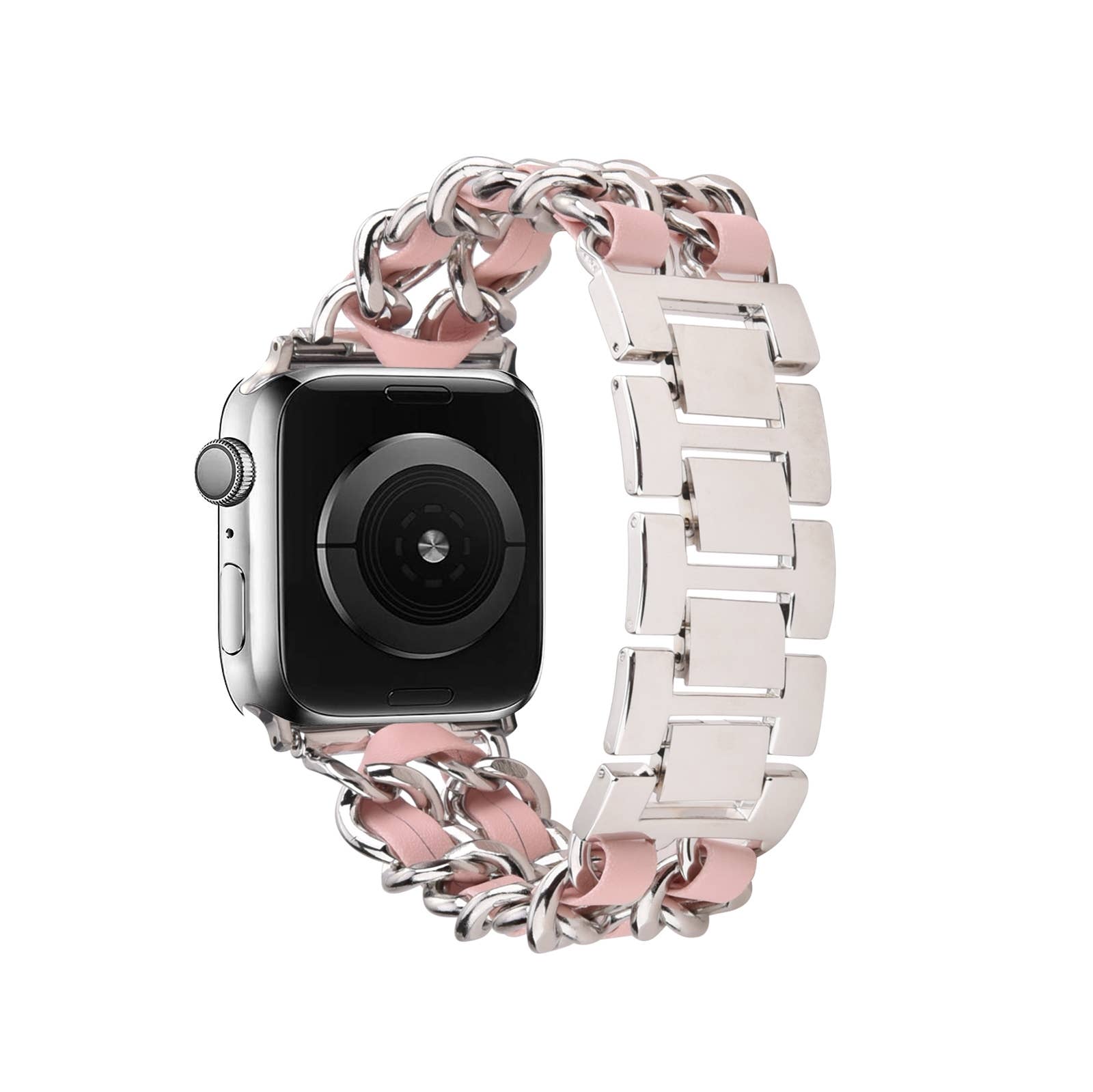 Upgrade your Apple Watch with our stylish braided leather strap. The strap's chain-like pattern is created by a series of interlocking leather links, giving it a unique and eye-catching look. Crafted from high-quality vegan leather, this strap is designed for durability and long-lasting wear. Plus, the adjustable buckle allows you to achieve the perfect fit for your wrist. Choose from a range of colors to complement your personal style.