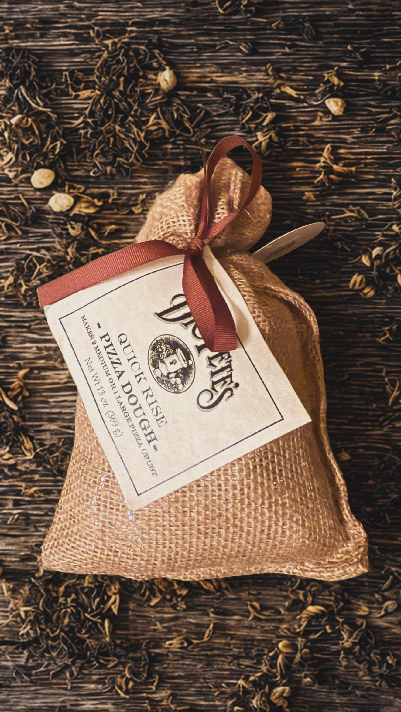 Love home cooked pizza, but find that making the dough is a hassle? Here is the fix! This mix makes 2 pizza crusts about 10 in. each or 1 large pizza crust. All you add is water and olive oil to the mix, let rest 30 minutes, either divide in half for two crusts or make 1 large crust. Top with your favorite sauce and toppings and bake about 15-17 minutes! You will have a crisp thin crust pizza made right at home! Buon Appetito! Naples will be calling for your secret recipe! You can always cover the unused dough and keep in your refrigerator for several days if you only want to cook one pizza! Hand crafted in small batches in Ailey, GA. Made to order - 1 year shelf life.